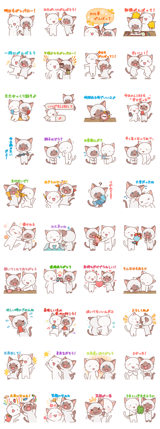 気づかいと思いやりをいっぱい詰め込んだ、シャムちゃんとシロくんのスタンプです。