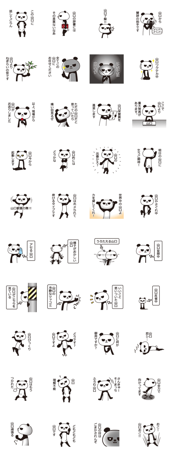 主に山口さん(やまぐちさん、ヤマグチさん)が日常会話で使用できる名字(苗字)スタンプです。