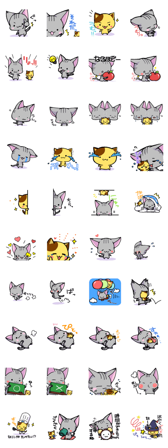 灰色の猫のはいねこと、プリン色の猫のぷりんのスタンプ第2段です。