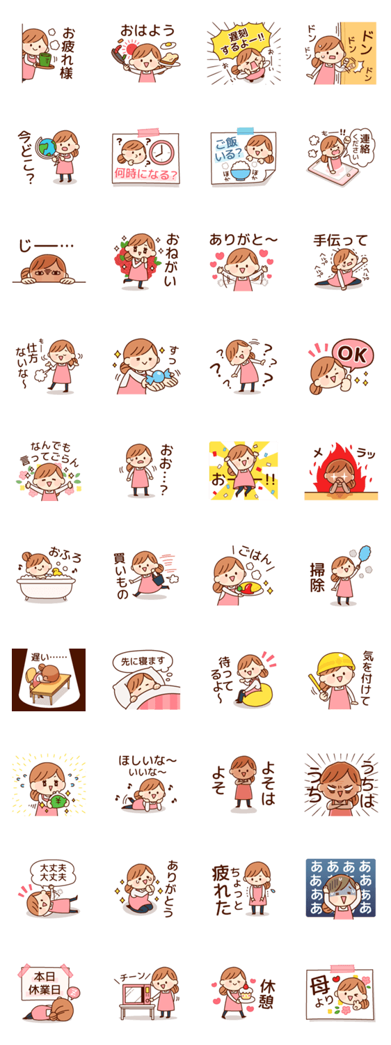 育児に家事にお仕事に毎日がんばってるママ・おかあさん・主婦のみなさんに!連絡に便利な言葉も沢山!らくらく返信ができちゃいます♪
