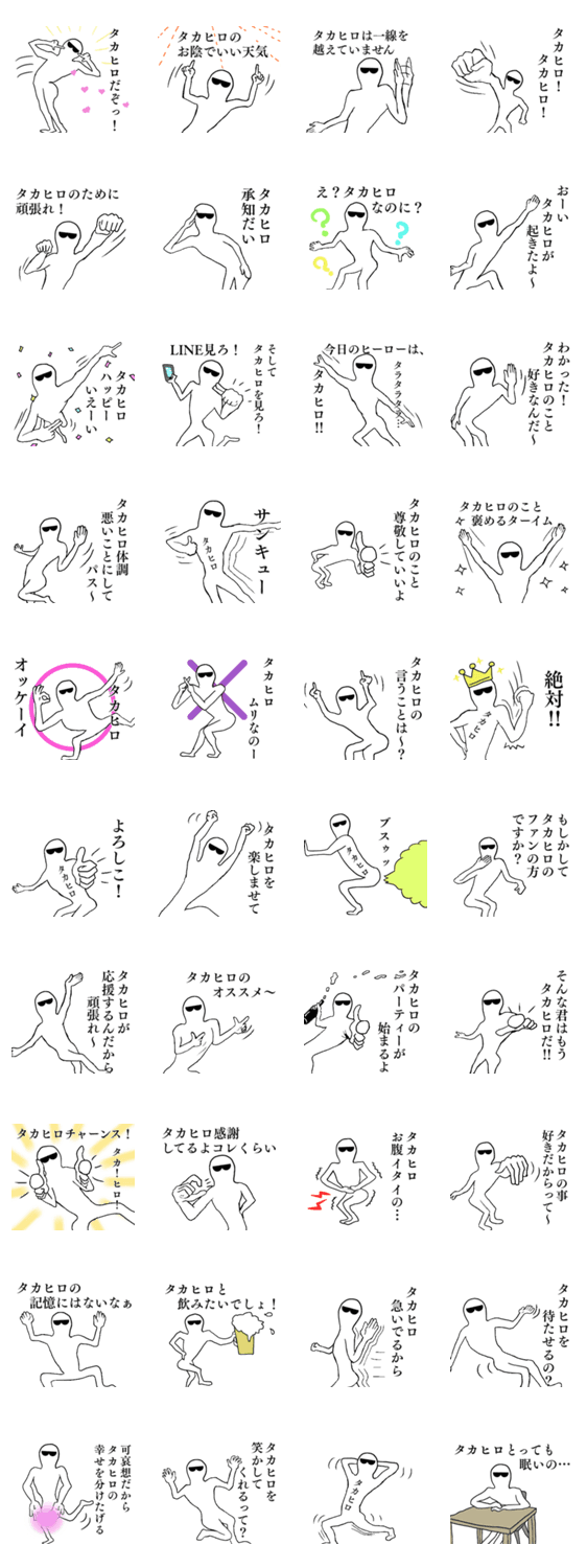 | スタンプ説明 | 素敵な「タカヒロ」さん専用のスタンプです。敬浩、高広、孝宏、崇裕、貴洋、隆弘、TAKAHIRO、貴大、隆博、たかちゃん、たかくんなどにオススメ! |