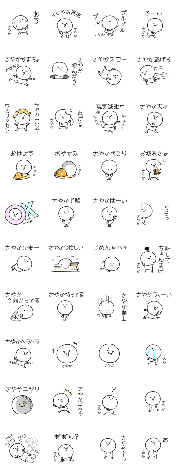 さやかさんが使うお名前スタンプ、丸い人編です。毎日使えることばを集めました。プレゼントにも。
