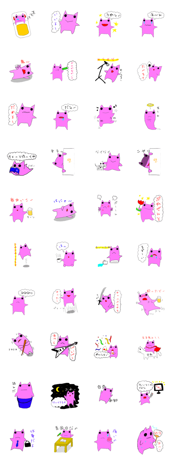 カエルっぽい生物のスタンプです。ふんわりして、ちょっとシュールな出来となっています。主にリアクション用としてお使いください。