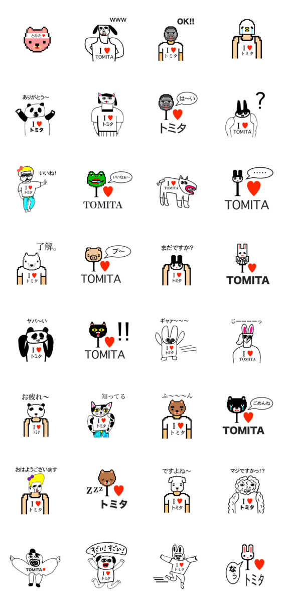 トミタ(とみた・冨田・富田・冨多・富多・富太・戸三田)さんに送れる名前(名字・苗字)スタンプです。