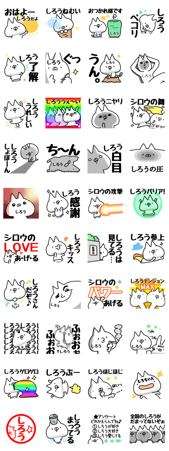 しろう/さん/くん/君/使う/名前/あだ名/名字/スタンプ/シロウ/士郎/四郎/史郎/志郎/史朗/司郎/四朗/志龍/四竜/志朗/志狼/詩郎/士朗/白烏/子狼/始郎/司朗/詩朗/専用/面白い