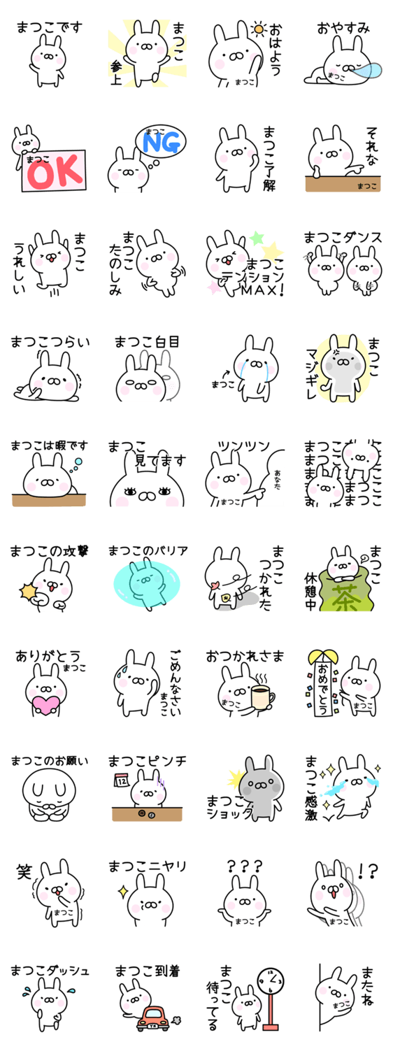 まつこさん、まつこちゃんが使いやすいお名前スタンプです。かわいいうさぎが、まつこさんの気持ちを表してくれています。まつこさんへのプレゼントにも最適です。