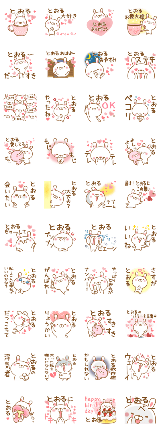 大好きなとおるに送るらぶらぶスタンプ。博,徹,亮,明,卓,亨,透,龍,亘,泰,達,享,公,トオル,通,由,融,行,澄,東児などとおるに送るラブラブスタンプです。