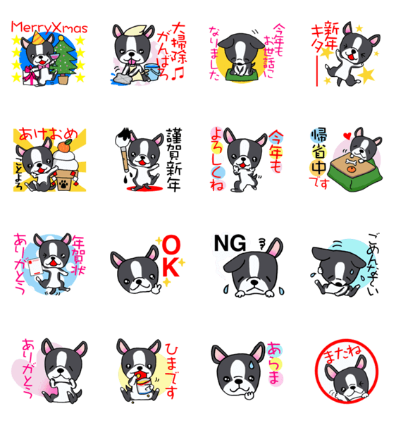 ボストンテリアの年末年始スタンプ! -LINEスタンプマニア