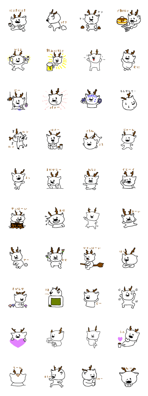 | スタンプ説明 | 無視されると不機嫌な鹿。既読したままにしていると、ムシカがやってくるかも… |