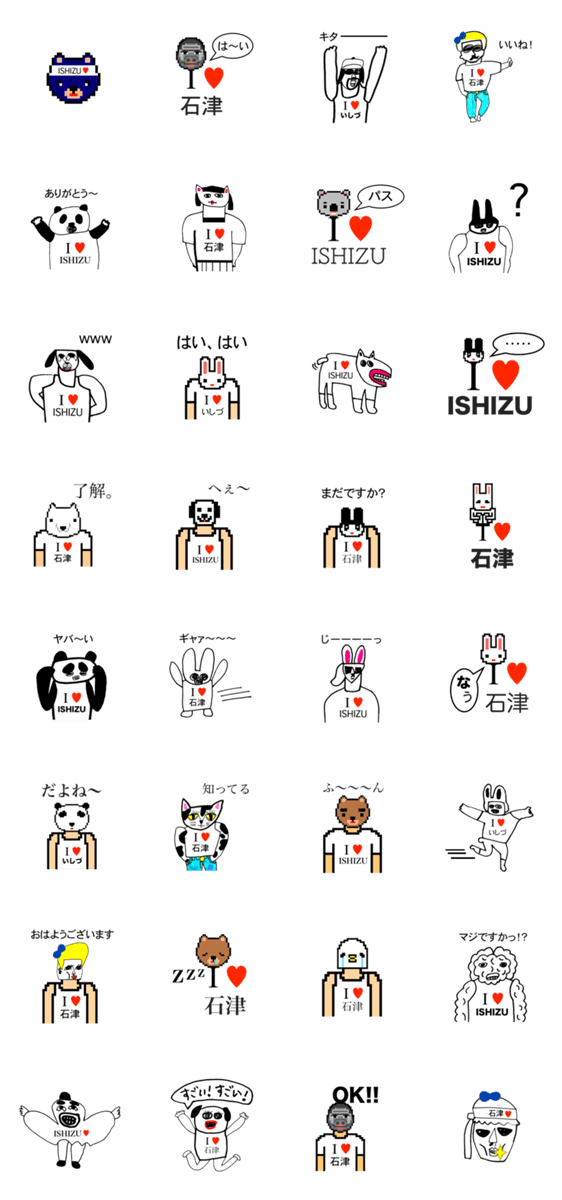 石津(いしづ・イシヅ)さんに送れる名前(名字・苗字)スタンプです。