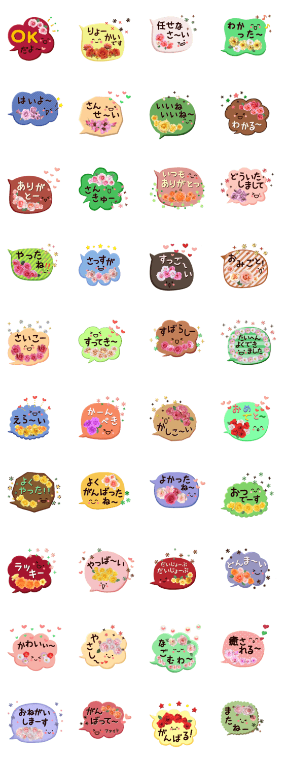 吹き出しに薔薇とフェイスの褒め言葉 -LINEスタンプマニア