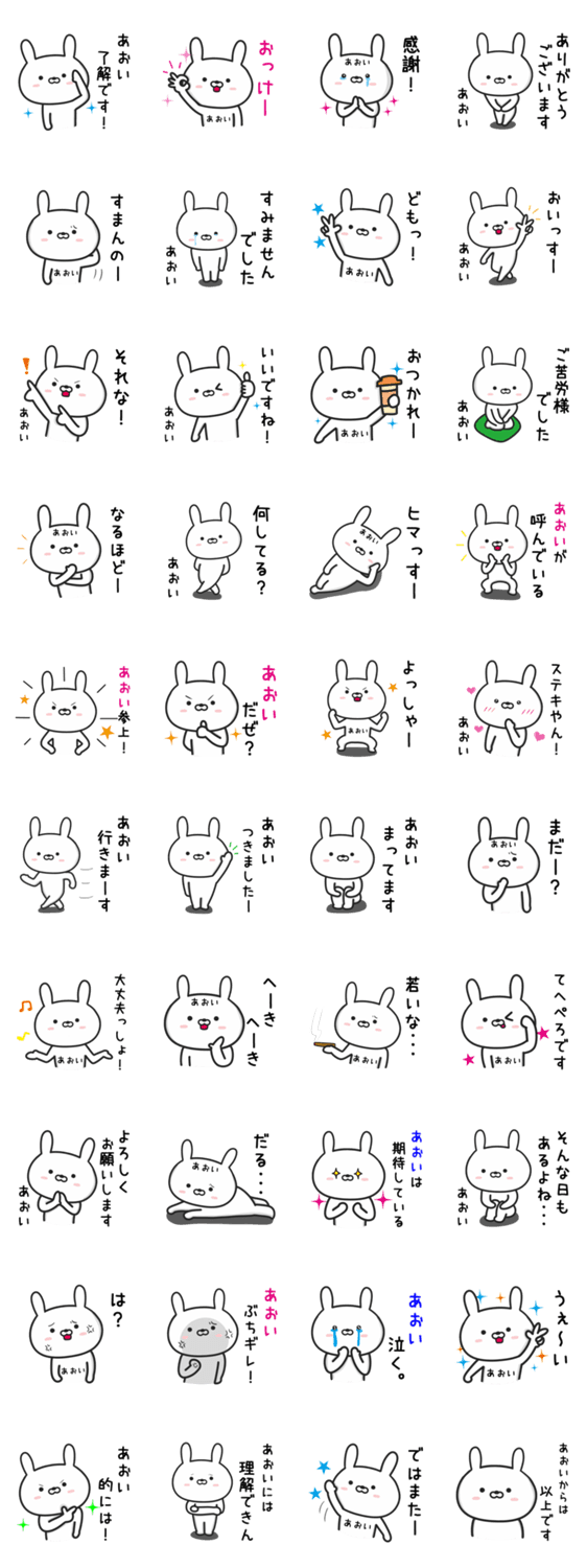 「あおい」さんが使える、うさぎの名前スタンプです。葵,青井,蒼井,アオイ,蒼,碧,碧唯,藍生,藍井,碧依,蒼生,藍さんなどに。
