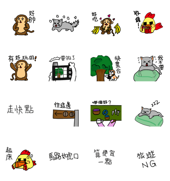 | スタンプ説明 | And family to go abroad to play with,There are some interesting things happening,Use the image of animals to share. |