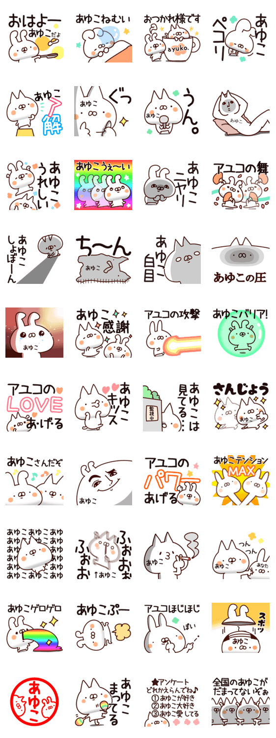 あゆこ/ちゃん/さん/君/使う/名前/あだ名/名字/スタンプ/アユコ/亜由子/鮎子/歩子/亜裕子/亜有子/亜友子/あゆ子/安祐子/亜佑子/アユ子/専用/面白い