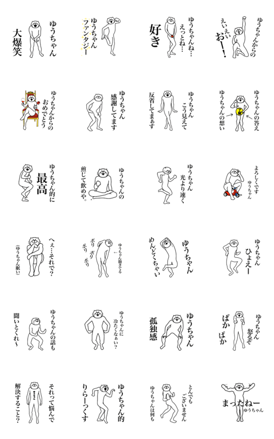ゆう(ちゃん.くん)が使える面白い動く名前スタンプ!ゆうき.ゆうこ.ゆうか.ゆうな.ゆうみ.ゆうた.ゆうじ.ゆうすけ.ゆうや.ゆうま.ゆういち.優.悠.祐.勇.裕などユウさんへ!!