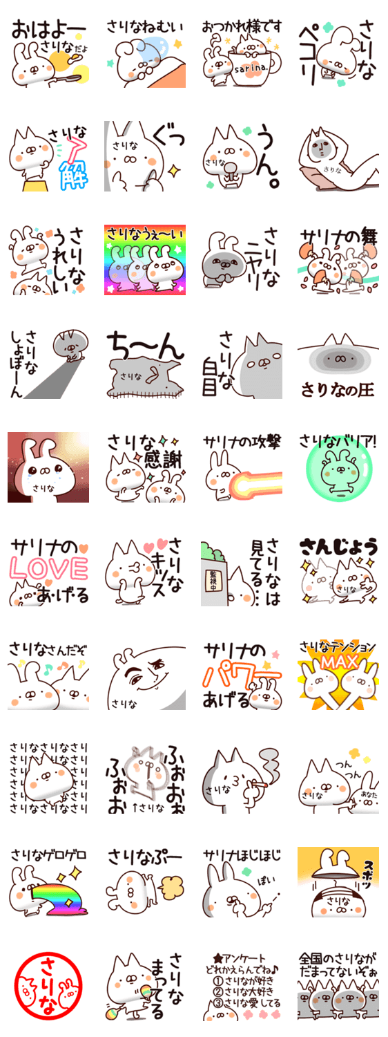 さりな/ちゃん/さん/君/使う/名前/あだ名/名字/スタンプ/サリナ/紗理奈/沙理奈/紗里奈/沙里奈/沙璃那/紗里菜/佐里菜/佐里奈/紗莉奈/紗莉菜/紗理菜/咲里菜/専用/面白い