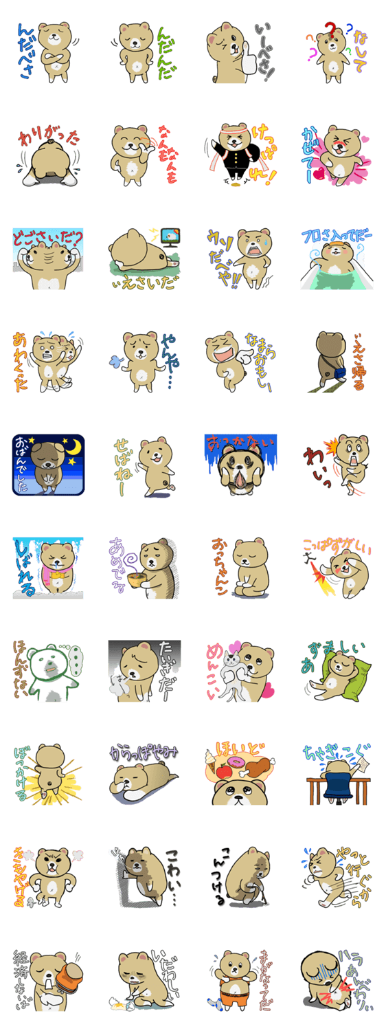 道産子はもちろん、それ以外の地域の方にも日常会話で使ってほしい北海道弁、函館弁をラインナップしました。キタノクマが表情豊かに気持ちを伝えます。