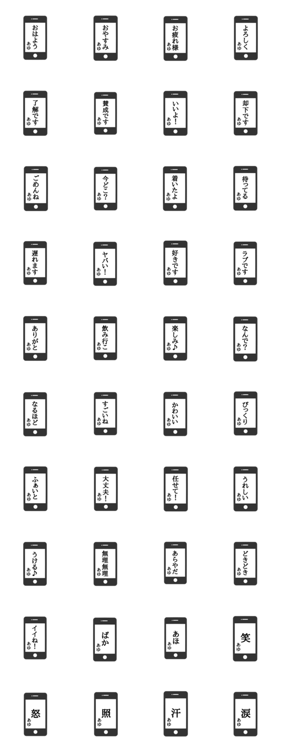 使えるシリーズ!今回はあゆさん専用スマホ風スタンプです!シンプルなデザインでプレゼントにもお勧めです♪