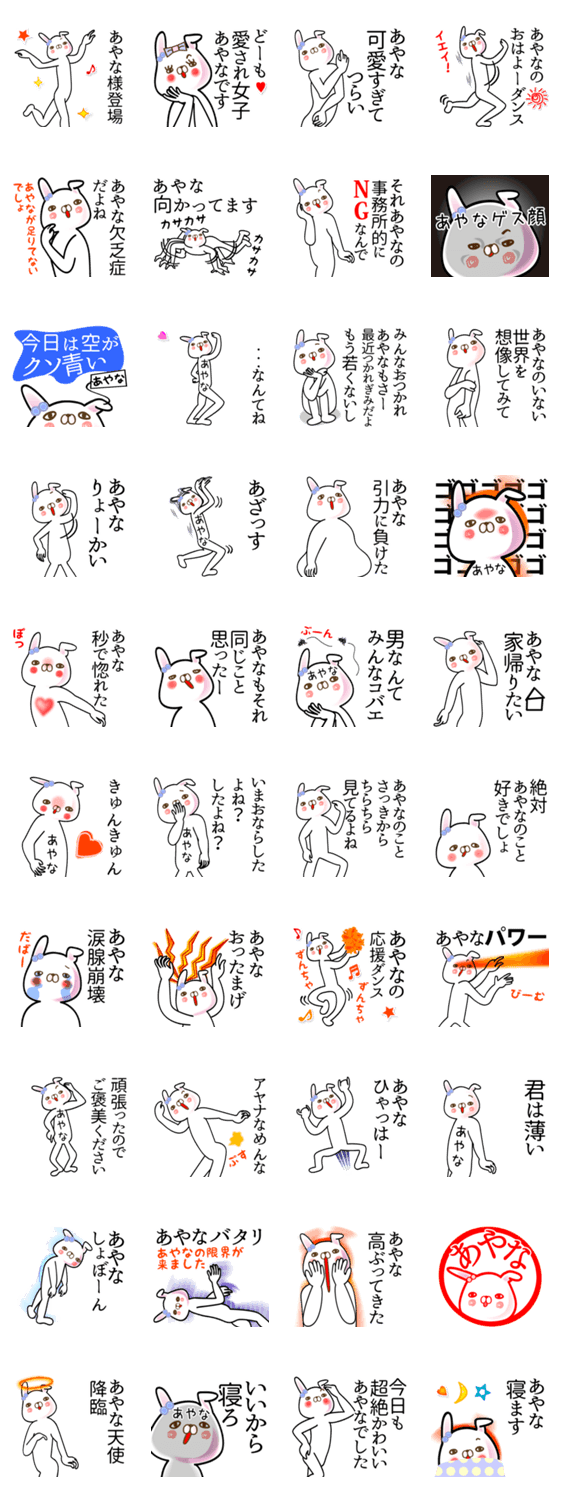 あやなさんが使う面白系名前スタンプ。あやな、アヤナ、ayana、彩奈、彩菜、綾奈さん等に