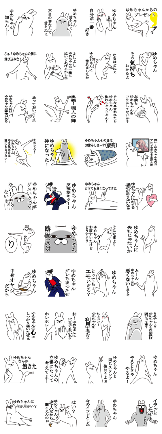 ゆめちゃんが使う面白名前スタンプ。ユメ、ゆめこ、ゆめの、ゆめか、ゆめり、ゆめみ、夢、優芽、由芽、結芽、ゆめな、ゆめ子、夢菜など全国のゆめがつく人専用のスタンプ