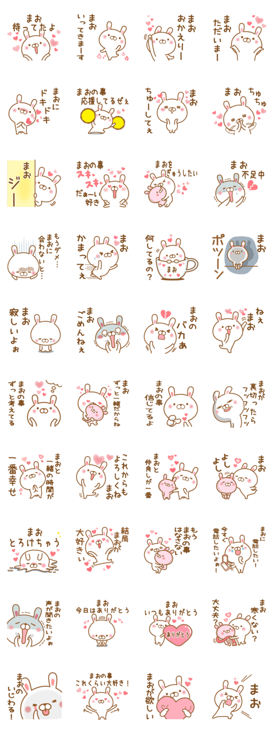 大好きなまおに送るらぶらぶスタンプ。マオ,真央,麻央,茉央,真麻,真緒,真尾,麻緒,舞緒,舞央,茉緒,真愛,麻愛,舞愛,茉愛,茉生,茉麻,まおみなどまおに送るらぶらぶスタンプ