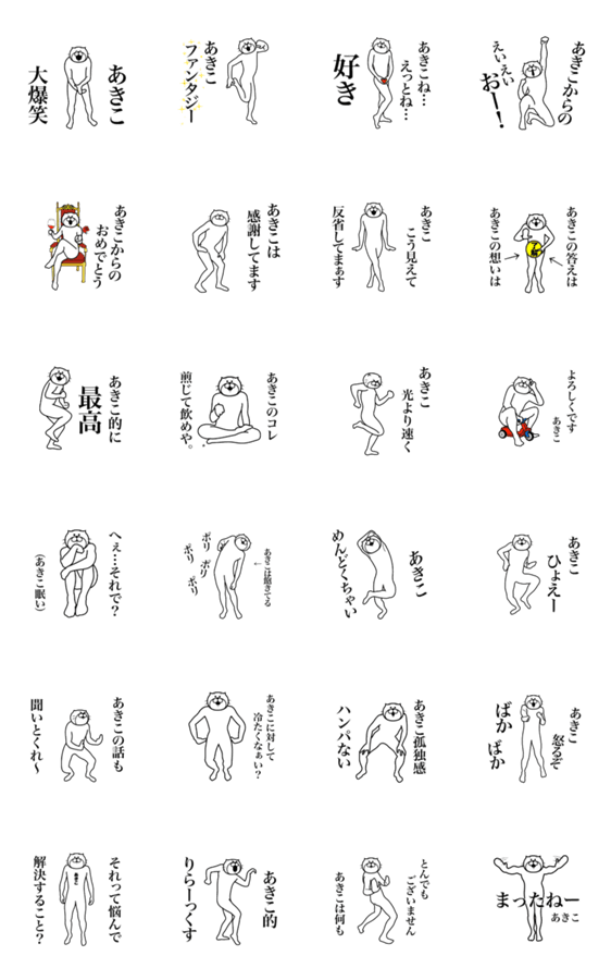 あきこちゃんが使える面白い動く名前スタンプ♪漢字は色々…昭子.明子.晶子.亜希子.章子.晃子.暁子.有希子.昌子.彰子.亜紀子.秋子.亜季子など世界中のアキコさんに届け♪
