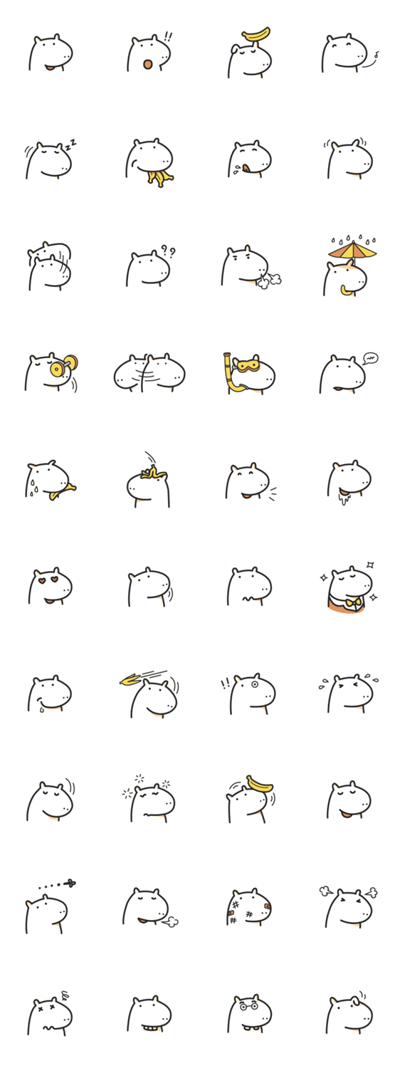 | スタンプ説明 | A happy white hippopotamus love to feed banana, so cute and funny. |