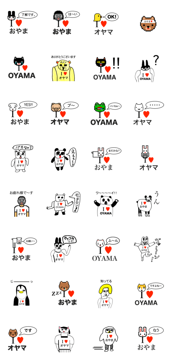 オヤマ(おやま・小山・雄山・女形・尾山・御山・飾山・親間・緒山)さんに送れる名前(名字・苗字)スタンプです。