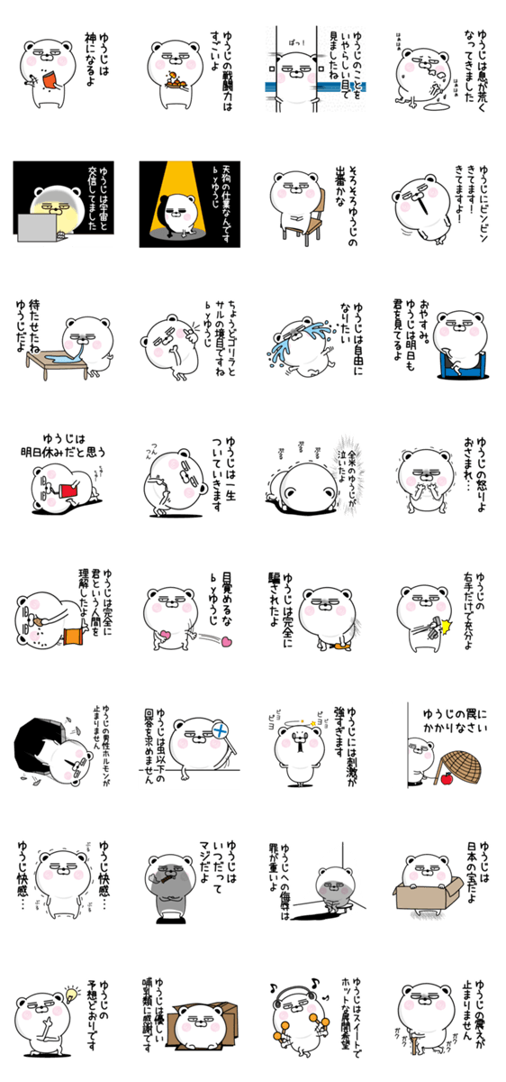 くだらないゆうじの名前スタンプ。ユウジ、雄二、裕二、裕司、祐二、勇次、勇治、悠二、祐志、雄司、優二、佑二専用