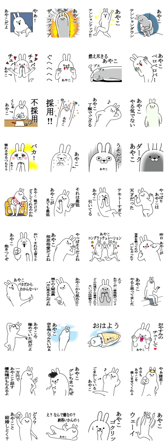 あやこが使う最高スタンプ。彩子,綾子,文子,亜矢子,絢子,史子,亜也子,亜弥子,阿也子,安矢子,あや子,アヤコ,紋子,アヤ子など全国のあやこがつく人専用のスタンプ