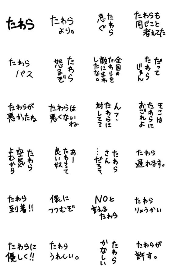 全国のたわらさんのスタンプ。 名字/名前/俵原/田原/俵