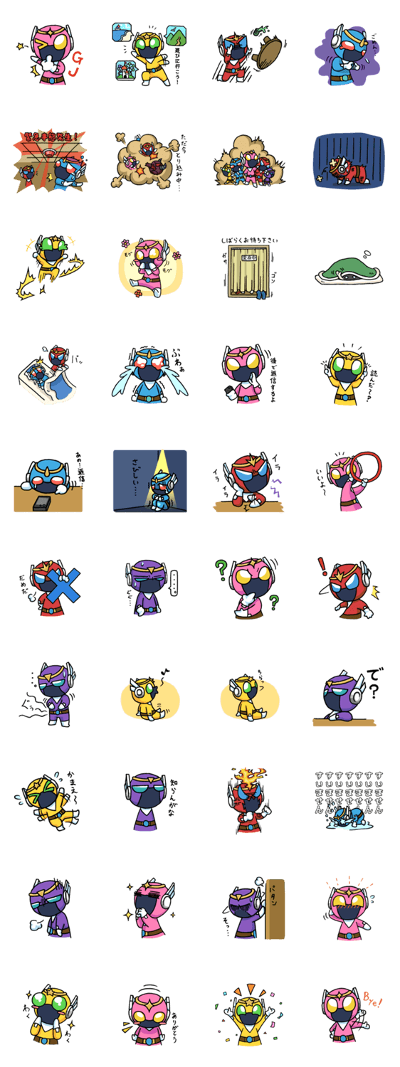 | スタンプ説明 | 『喜び』のピンク!『怒り』のレッド!『哀しみ』のブルー!『楽しさ』のイエロー!四人揃って『感情戦隊 喜怒哀楽』!『紫』なヤツがいたような気がするが、気にするな! |