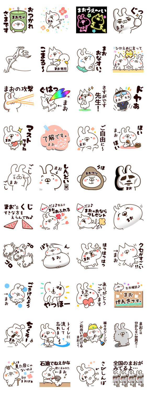 まお/ちゃん/さん/くん/使う/名前/あだ名/名字/スタンプ続編/マオ/まおこ/まおか/まおの/まおな/まおみ/まおえ/まおよ/まおね/まおり/まおは/まおと/まさお/真央/麻央/専用