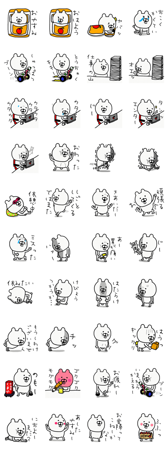 くまが大好きな人のためのスタンプ。くまの仕事用スタンプです。『やっぱりくまがすき(敬語と毒舌)』と合わせてつかうと、より仕事でつかえます。