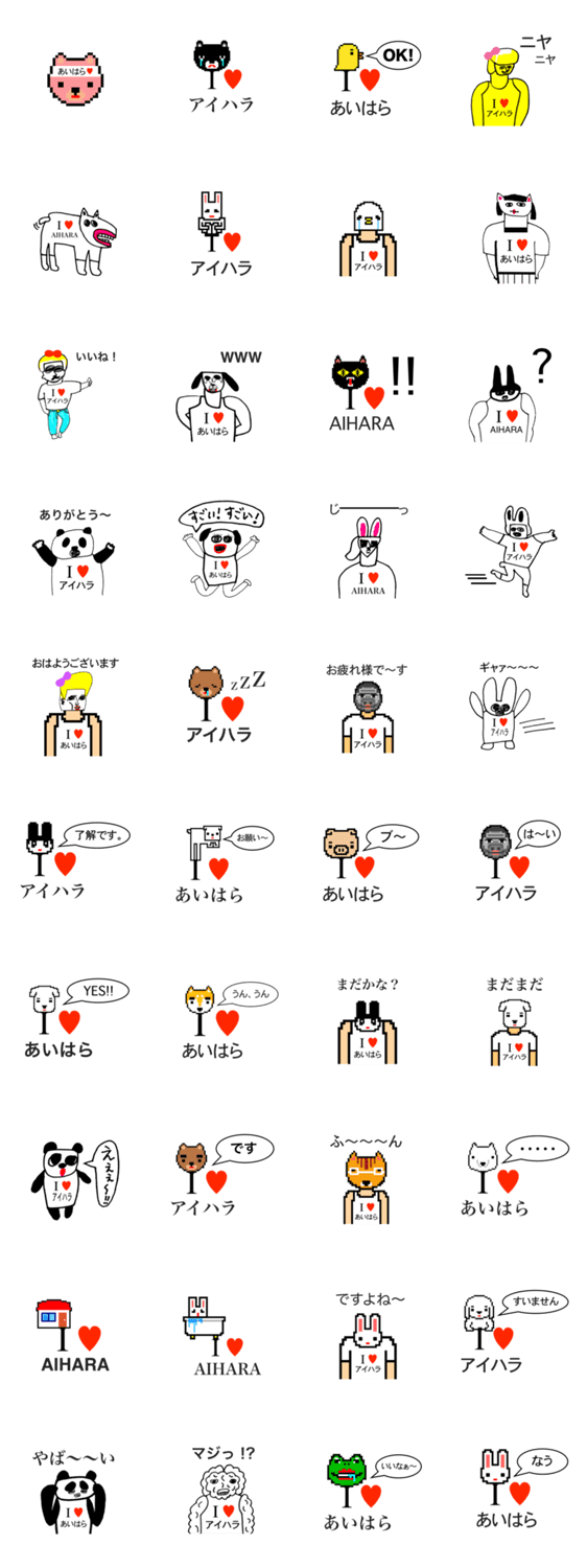 アイハラ(あいはら・相原・藍原・合原・愛原・会原・哀原・逢原・阿井原・亜依原)さんに送れる名前(名字・苗字)スタンプです。