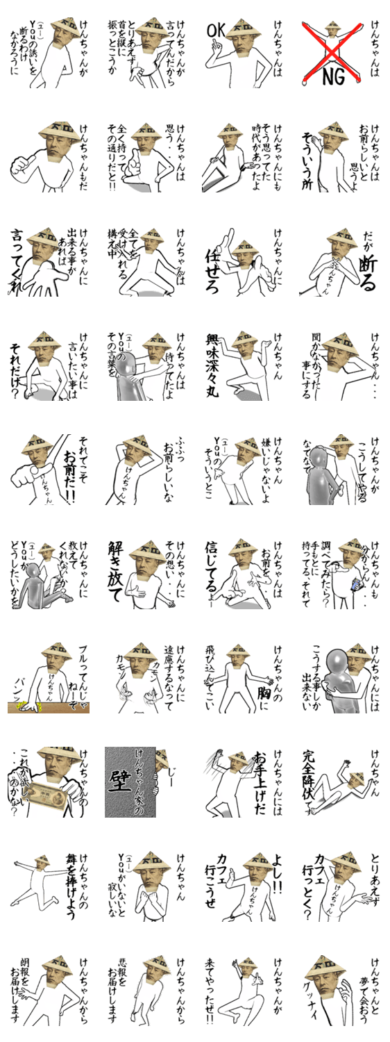 YOUって言っちゃう若干癖が強いスタンプです。全国のけんじ、けんいち、けんたろう、けんた、けんじろう、けんいちろう、けんすけ、けんご、けんと、けんま、けんやさん用