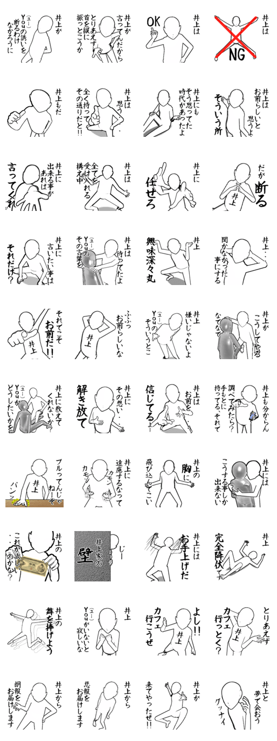 YOUって言っちゃう癖が強めのスタンプです。札/黒/白/ピンクの4パターンあり。いのうえ・イノウエ・井上さん専用
