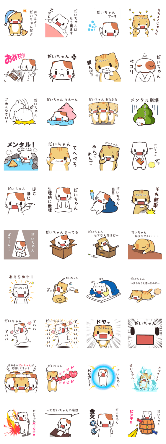 | スタンプ説明 | 貝ねこシリーズの名前スタンプ。だいち,だいき,だいすけくん等へ送るかわいいゆるい名前、あだ名スタンプ♡大好きな愛しの家族、カップル、友達、夫婦が毎日使うよ |