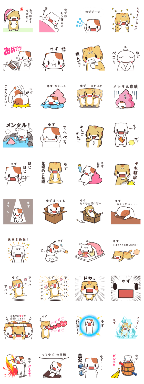 | スタンプ説明 | 全国のゆずさんお待たせしました!貝ねこの名前スタンプです。 かわいい貝ネコさんが、ゆずさんの気持ちを表してくれます。ゆずさんへのプレゼントにも最適です。 |