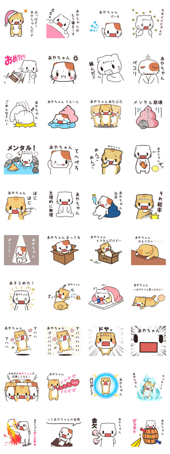 | スタンプ説明 | あや/あやか/あやな/あやこ/あやの/あやめ/あやね/彩/綾/亜弥/絢香等、あやちゃんに送る貝ねこシリーズの名前スタンプです。恋人、家族、友達に気持ちを伝えてね♥ |
