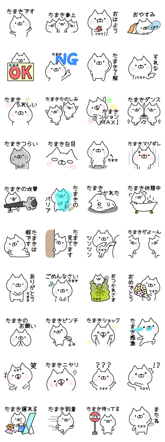 たまきさん、たまきちゃんが使いやすいお名前スタンプです。かわいいねこが、たまきさんの気持ちを表してくれています。たまきさんへのプレゼントにも最適です。