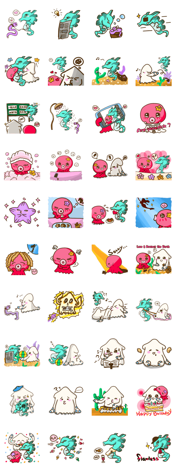| スタンプ説明 | Marine friend Beibei and Tintin again! This added a new friend, and fell in love Beibei, what friendship with love Beibei will choose who?, Or ... |