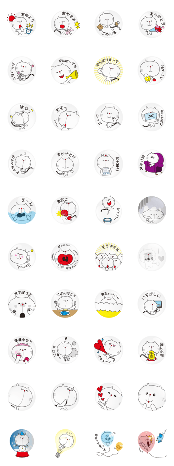 白ネコのあいうえお・・・ってるスタンプ