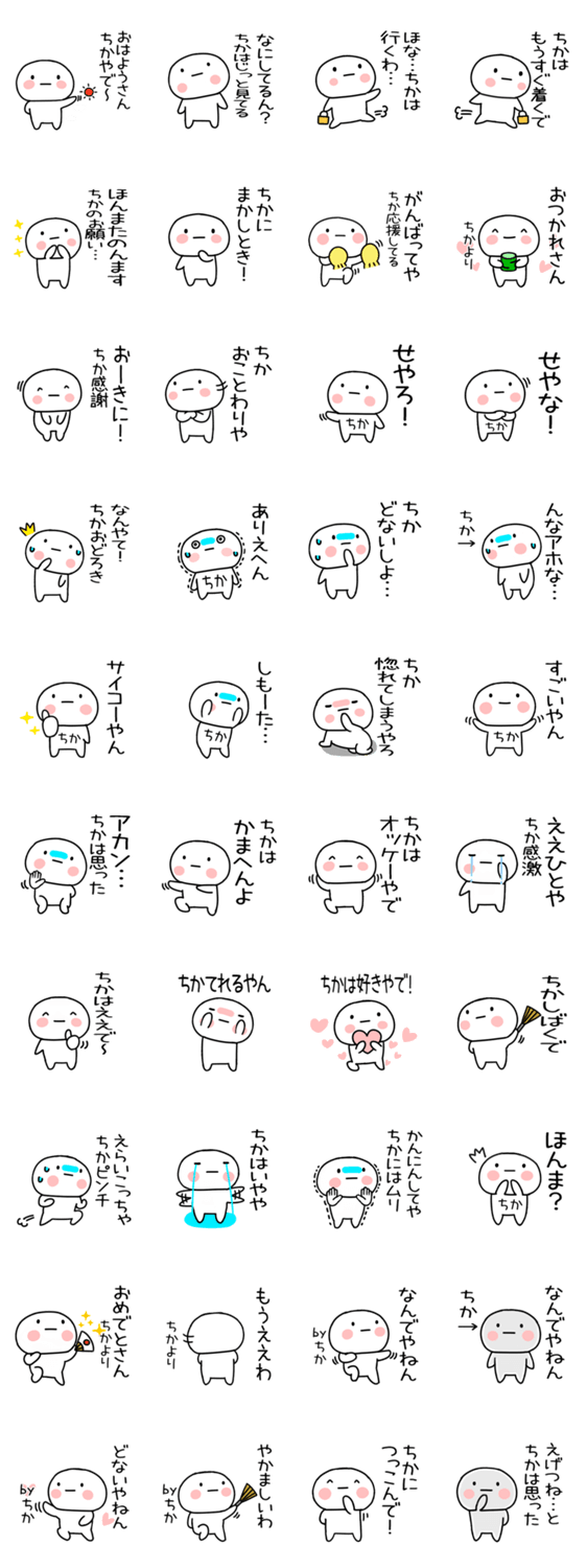 「チカ」の日常で無難に毎日使える関西弁の名前スタンプです。しろくてまるいキャラクターです。
