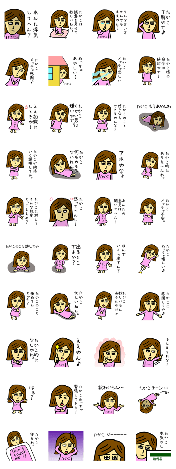 名前が たかこ 、タカコ の人がつかえる関西弁のたかこちゃん、タカコちゃんの名前スタンプです。