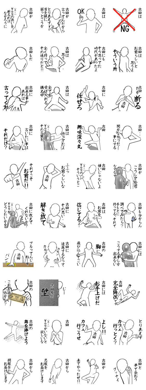 癖が強めの名前・名字・あだ名スタンプです。札/黒/白/ピンクの4パターンあり。吉田・よしだ・ヨシダさん専用