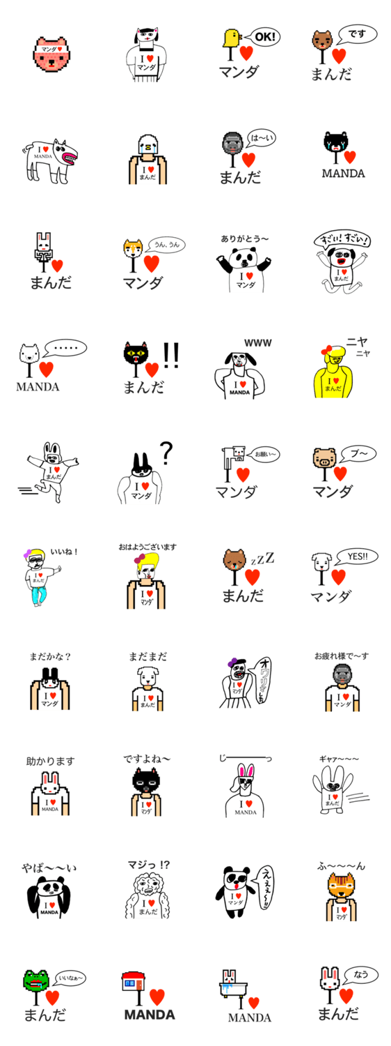 マンダ(まんだ・万田・茨田・萬田・満田・慢田・万多・萬打)さんに送れる名前(名字・苗字)スタンプです。