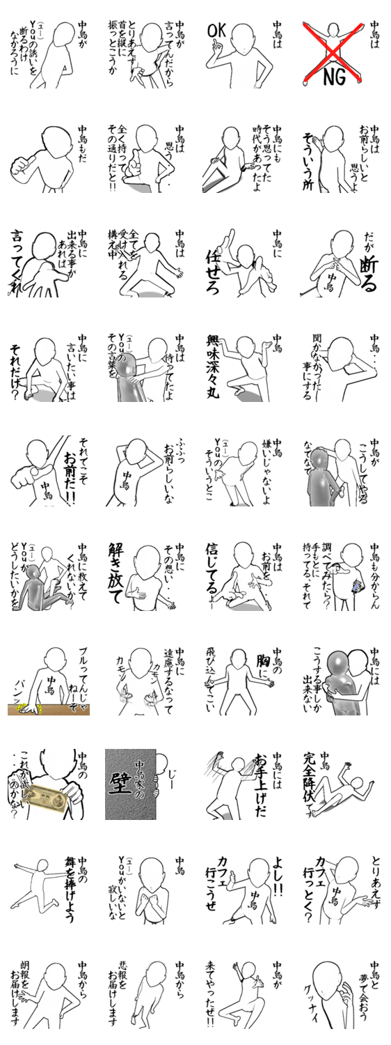 癖が強めの名前・名字・あだ名スタンプです。札/黒/白/ピンクの4パターンあり。なかじま・中島・ナカジマさん専用