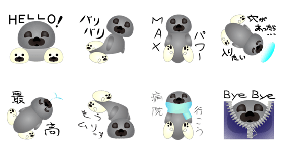 ほのぼのアザラシ親子のスタンプ。第1弾。