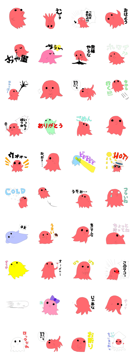足じゃないよ!手だよ!と言い張るたこ、おててたこのゆるいスタンプ。